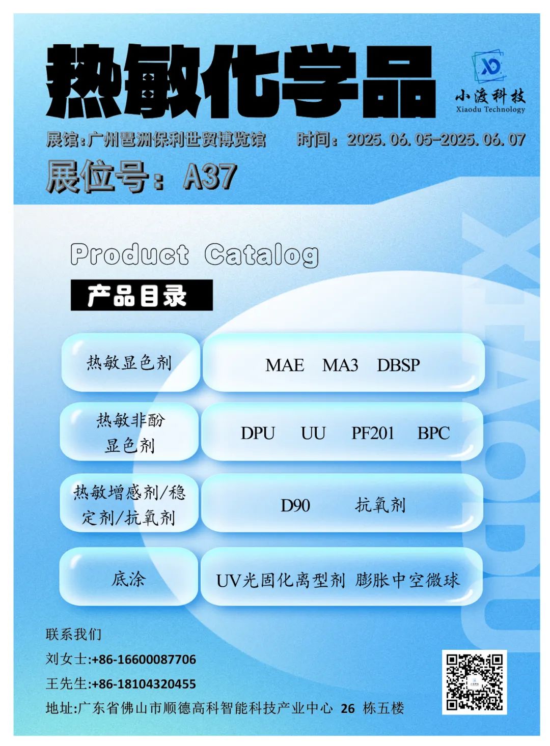 XIAODU TECHNOLOGY(GUANGDONG)CO.,LTD:Producers of heat-sensitive chemicals, including color developers, sensitizers, stabilizers, antioxidants, etc.
